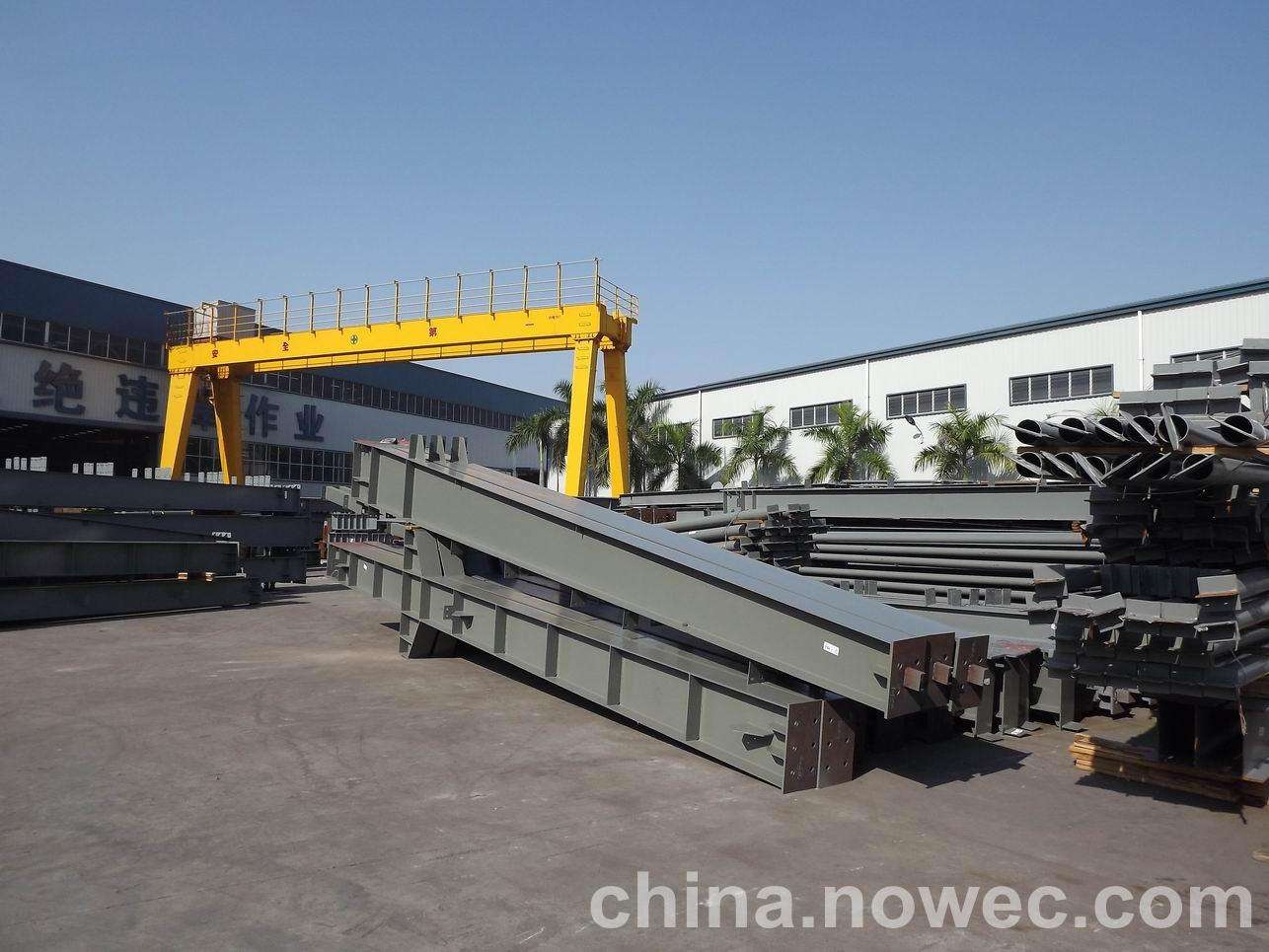 条状单元一般沿长跨方向分割,其宽度约为1~3个网格,其长度为l2或l2/2(l2为短跨跨距)。块状单元一般沿睢宁网架平面纵横向分割成矩形或正方形单元。每个单元的重量以现有起重机能胜任为准。条(块)与条(块)之间可以直接拼装,也可空一网格在高空拼装。由于条(块)状单元是在地面拼装,因而高空作业量较高空散装法大为减少,拼装支架也减少很多,又能充分利用现有起重设备,故较经济。这种安装方法适用于分割后网架的钢度和受力状况改变较小的各类中小型网架,如两向正交正放四角锥、正放抽空四角锥等网架。